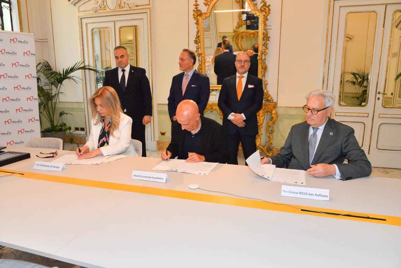 أخبار الجامعة الأردنية (أ ج أ) - أبرمت الجامعة الأردنية مذكرة تفاهم مع مؤسسة "ميد-أور" والمستشفى الجامعي الإيطالي سان رافاييلي وجامعة السلطان مولاي سليمان المغربية، لتعزيز التعاون الدولي في المجال الطبي.