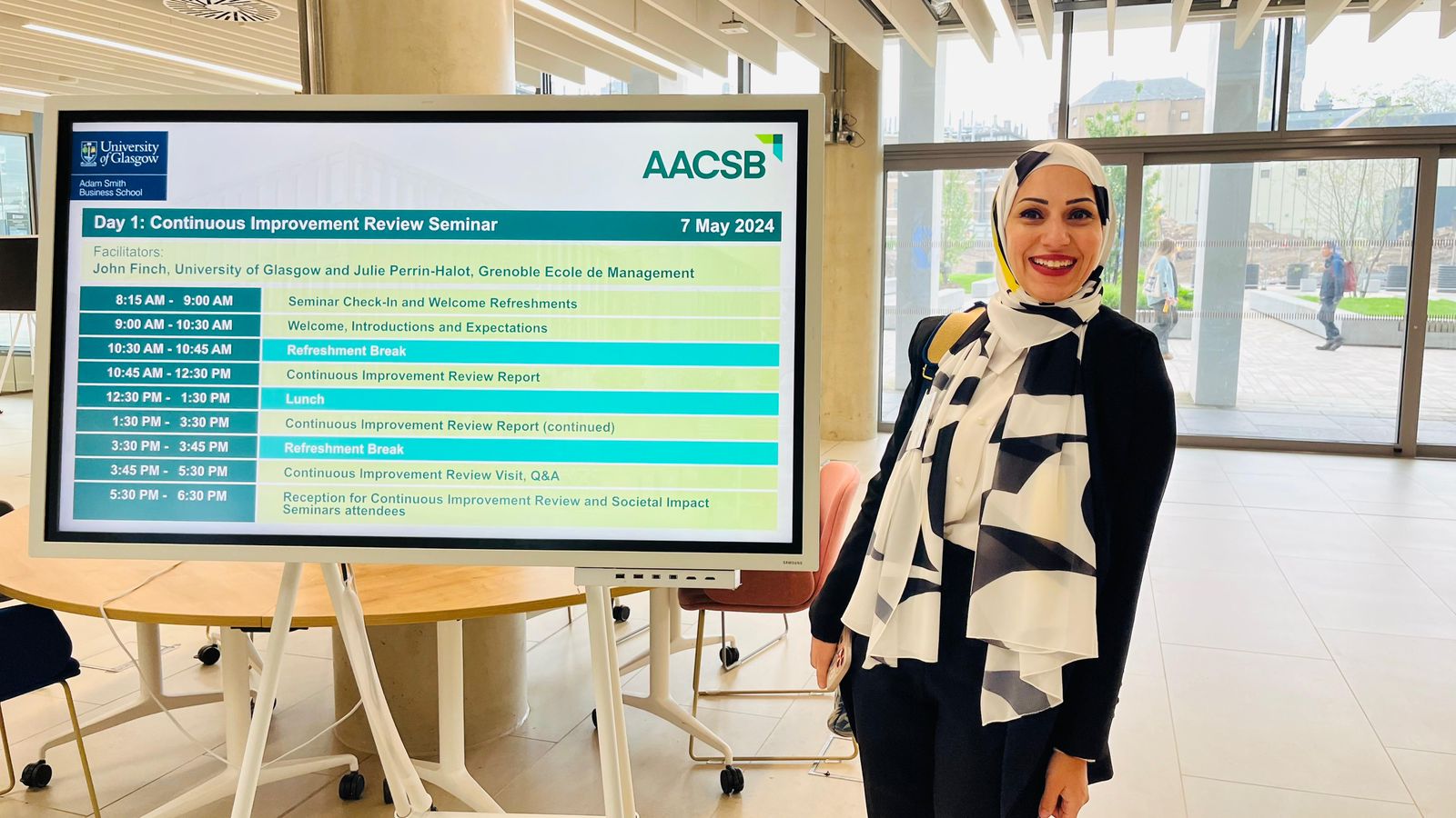 أخبار الجامعة الأردنية (أ ج أ) – شاركت مساعدة عميد كلية الأعمال لشؤون التصنيفات والاعتماد الدولي الدكتورة حلا زيدان بمؤتمر الاعتمادية المتخصص وورش العمل التي عقدتها هيئة الاعتماد الدولي لكلية الأعمال AACSB في جلاسكو اسكتلندا.