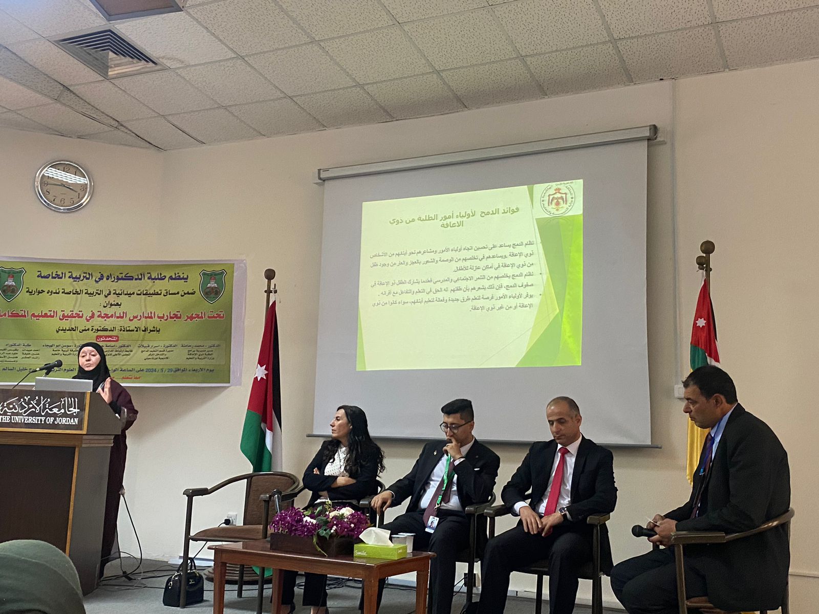 أخبار الجامعة الأردنية (أ ج أ) – نظمت طلبة الدكتوراه ضمن مساق التطبيقات الميدانية في كلية العلوم التربوية وبإشراف الدكتورة منى الحديدي ندوة حوارية بعنوان "تحت المجهر تجارب المدارس الدامجة في تحقيق التعليم المتكامل".