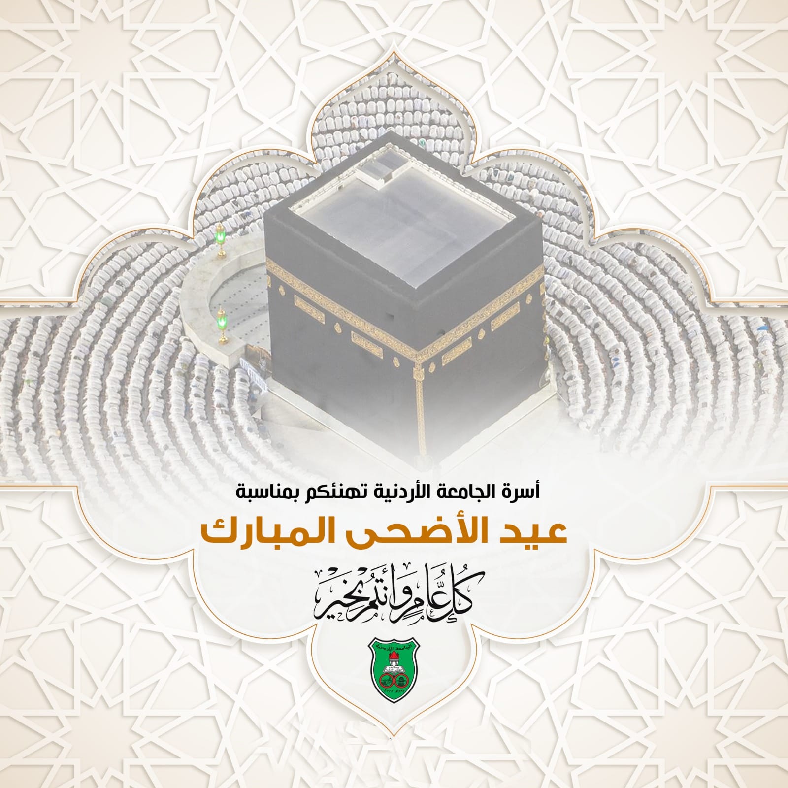 أخبار الجامعة الأردنية (أ ج أ) - يتقدم رئيس الجامعة الأردنية الدكتور نذير عبيدات بأحر التهاني وأطيب الأمنيات إلى أعضاء الهيئتين التدريسية والإدارية، والطلبة الأعزاء، بحلول عيد الأضحى المبارك.