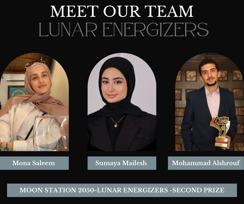 أخبار الجامعة الأردنية (أ ج أ) - فاز فريق Lunar Energizers ضم طالبة من الجامعة الأردنية بالمركز الثاني في مسابقة Moon Station 2050) ) التي نظمها كل من Moon Village Association وHarbin Institution of Technology وChinese Society of Astronautics.