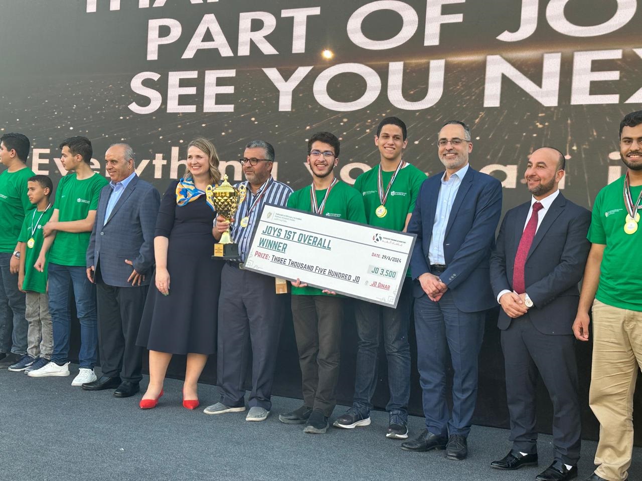 وضم الفريق كل من الطالب وصفي الرشدان والطالب أحمد شطناوي والطالب محمد الشرمان، فيما يتولى المعلم علي الدبابي، الإشراف على الفريق.