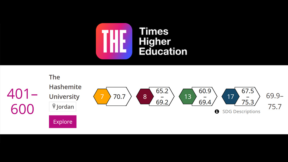 الجامعة الهاشميّة تحقق تقدمًا ملحوظًا في تصنيف التايمز لأهداف التنمية المستدامة 2024