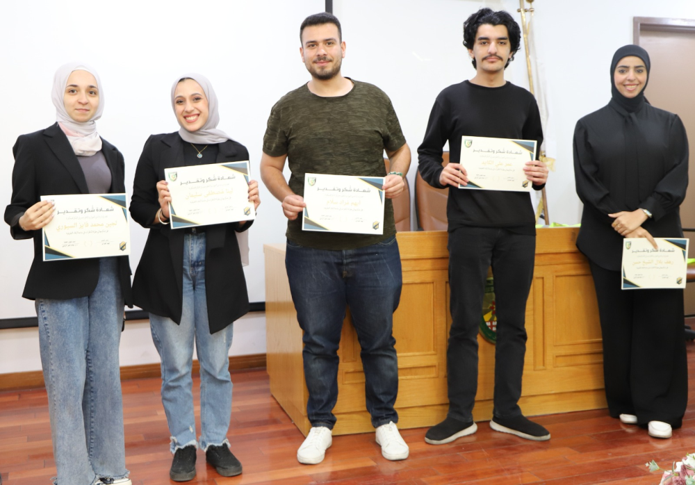 هذا وقد تم تكريم الفريق الفائز بالمركز الاول وفريق المحكمين من مؤسسة مناظرات الاردن والفرق المشاركة من قبل عمادة شؤون الطلبة.