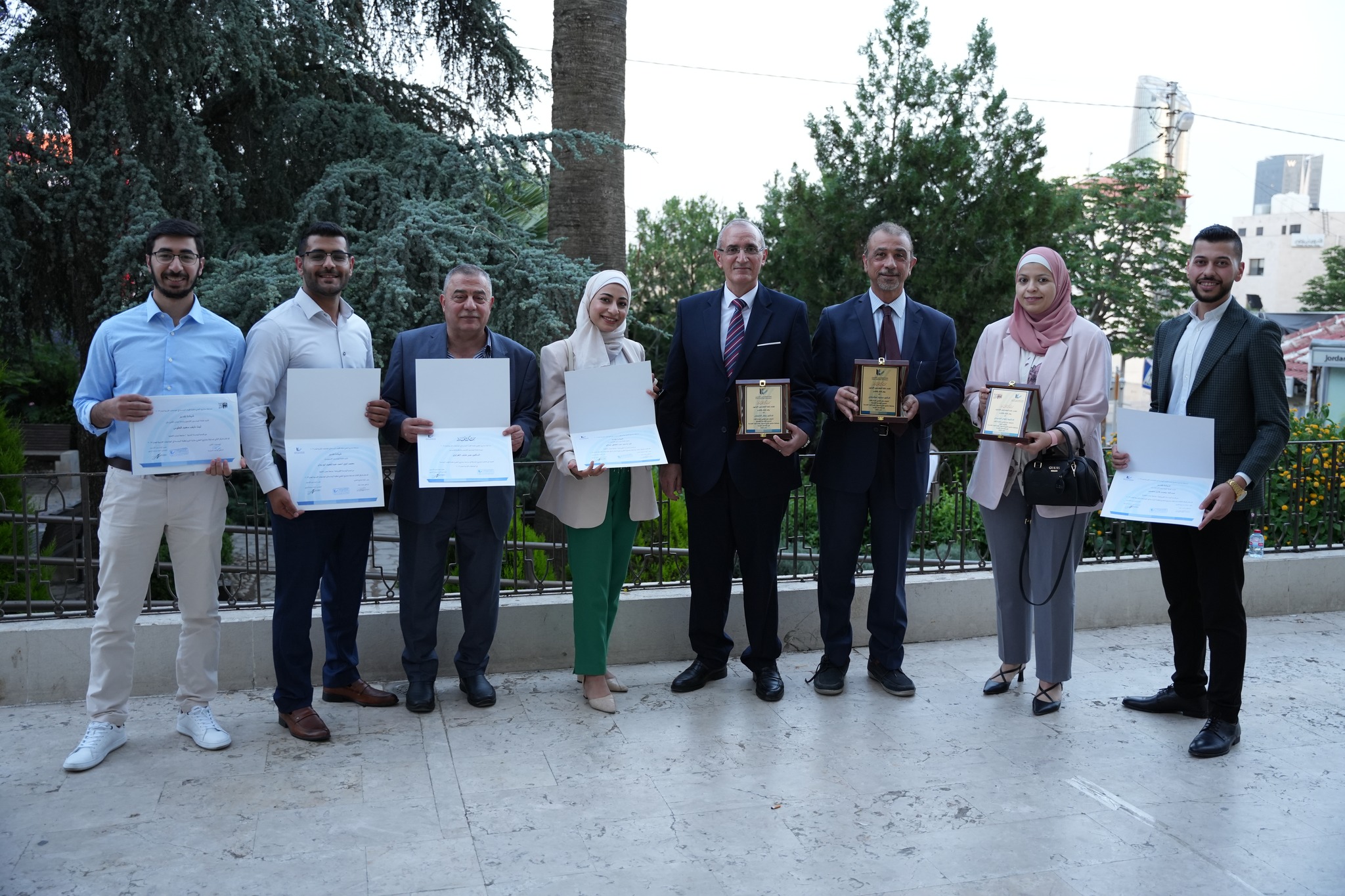 تألقت جامعة عمان الأهلية في مسابقة مشاريع التخرج التي تنظمها نقابة المهندسين الأردنيين. حيث حصل طلبة كلية الهندسة على جائزتين تعكسان تميزهم في مشاريع تخرجهم، فقد فاز طلبة قسم الهندسة المدنية (ليث قطوس وحسن النجاجرة) بإشراف الدكتورة تقوى الحديدي بالمركز الثاني ضمن مشاريع شعبة هندسة المرور بالتعاون مع أمانة عمان الكبرى عن مشروعهم المبتكر 'تصميم وتحليل أداء بدائل الميادين الدائرية' الذي قدم حلولاً مبتكرة لتحسين الأداء المروري في تقاطع شارع مكة. كما فاز طلبة قسم الهندسة الطبية (لين صالح)، (عبد الله منصور)، (محمد أمين أبو رمان)، و(عبد الله أبو ماضي) بإشراف الاستاذ الدكتور محمود اسكندراني والأستاذ الدكتور جمال النابلسي بالمركز الثالث ضمن مشاريع شعبة الهندسة الكهربائية عن مشروعهم 'تصميم وتنفيذ الأنف الإلكتروني للتطبيقات الكيميائية والطبية الحيوية" حيث أن هذا المشروع يقدم تصميم في مجال التشخيص الطبي ويساهم في إحداث تقدم نوعي، بالكشف عن الأمراض عن طريق تحليل المكونات الكيميائية والغذائية بشكل غير تداخلي. ومن الجدير بالذكر بأن كلية الهندسة في جامعة عمان الاهلية قد حصلت على عدة جوائز في مسابقة مشاريع التخرج لسنوات سابقة وهذه الإنجازات تدل على الابتكار وتعزيز المهارات العملية لطلابها، مما يعد خطوة هامة نحو تحقيق التميز في مجالات الهندسة المختلفة.