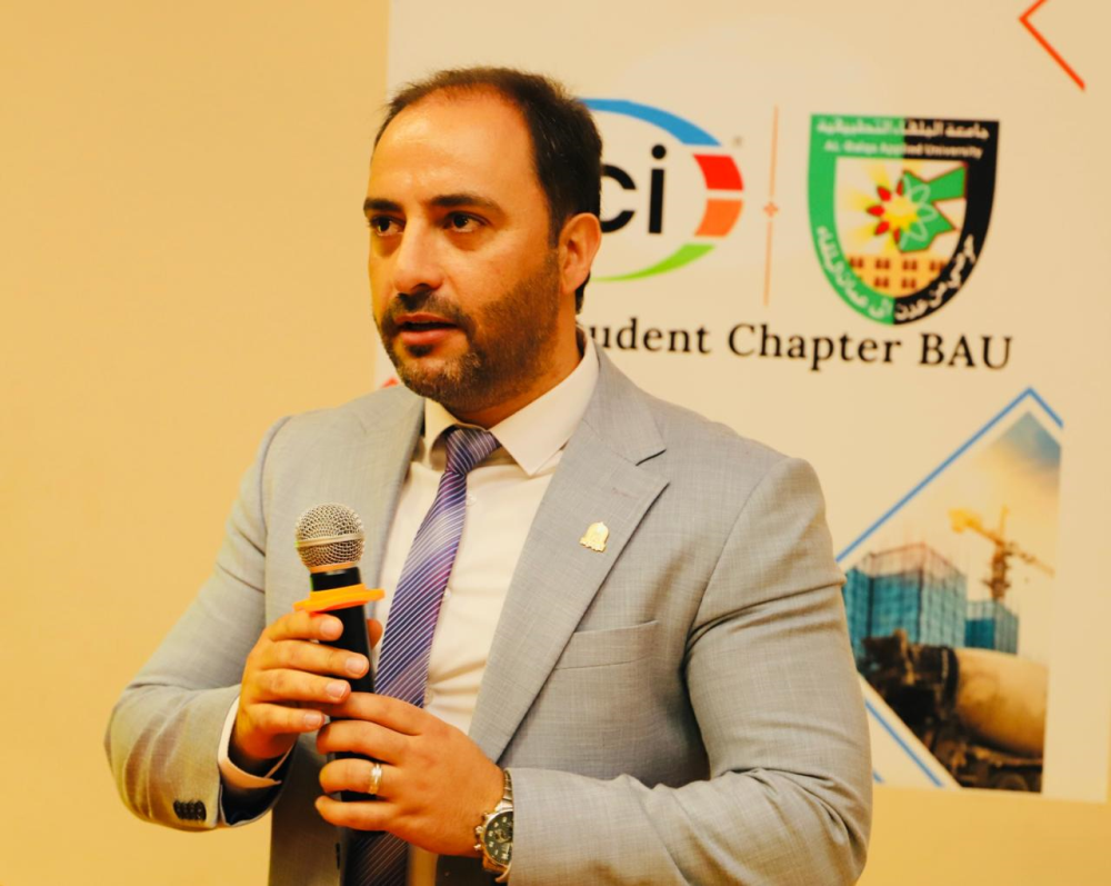 هذا وقد اشتمل اليوم العلمي الذي أدارته المهندسة ربى حياصات على كلمة للدكتور فارس المطالقة رئيس الفرع الطلابي في معهد الخرسانة الأمريكي في جامعة اليرموك والذي تحدث فيها عن المعهد والأنشطة والفعاليات التي ينفذها المعهد.