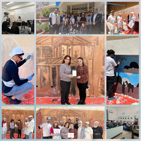 نظمت لجنة الأنشطة اللامنهجية وخدمة المجتمع على مستوى الكلية؛ ورشة عمل في المدرسة الوطنية الأرثوذكسية في عمان/ الأشرفية؛ وذلك يوم الثلاثاء الموافق 14/5/2024، شارك فيها نخبة أعضاء الهيئة التدريسية وأعضاء الهيئة الإدارية والطلبة من تخصصات الكلية كافة. وتضمنت الورشة؛ محاضرة تعريفية لطلبة المدرسة عن البرامج الأكاديمية المطروحة في الكلية، والبيئة التعليمية المتميزة في جامعة عمّان الأهلية، وشروط الالتحاق بالبرامج الأكاديمية. كما تضمنت رسم جدارية من تصميم الطلبة في المدرسة. وبادرت إدارة المدرسة الجامعة إلى تكريم المشاركين بشهادات تقدير وأهدت درع المدرسة إلى جامعة عمّان الأهلية. وتأتي هذه المبادرة ضمن خطة العمل السنوية للجنة الأنشطة اللامنهجية وخدمة المجتمع على مستوى الكلية، كما تأتي في إطار سياسة الانفتاح التي تنتهجها الجامعة على المجتمع المحلي، بما يتماشى مع رؤيتها وسياستها وقيمها الجوهرية.