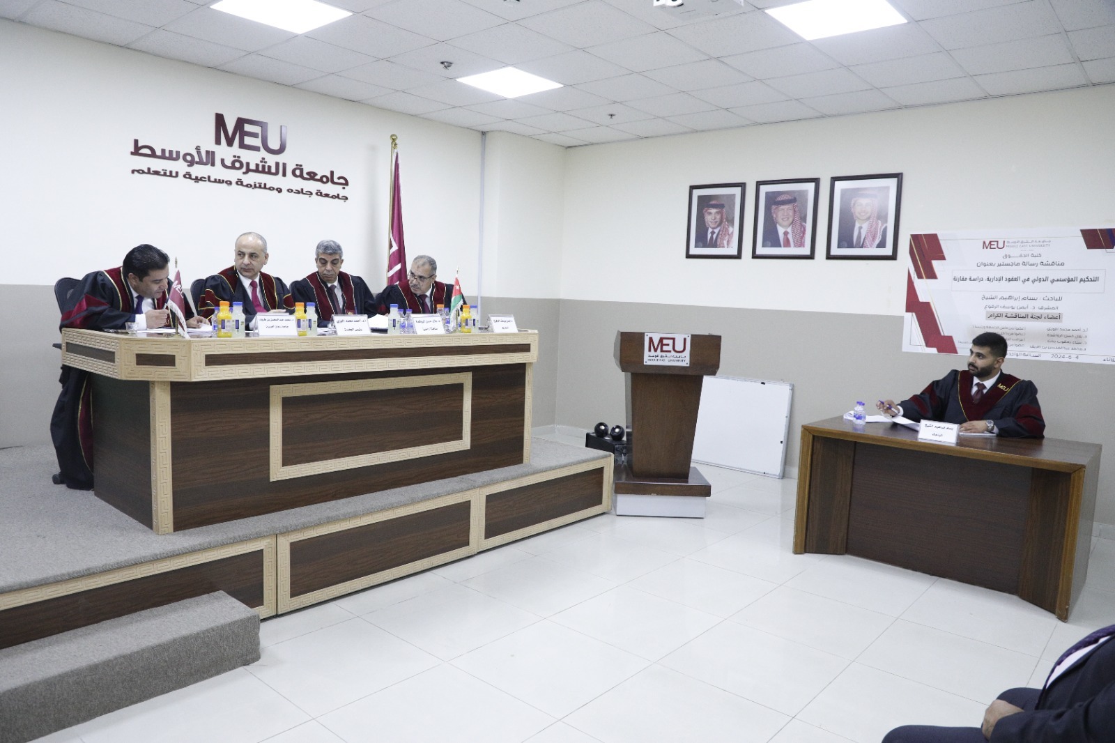 عمّان – نوقشت في كلية الحقوق بجامعة الشرق الأوسط، رسالة ماجستير بعنوان: التحكيم المؤسسي الدولي في العقود الإدارية، دراسة مقارنة ، للباحث بسام إبراهيم الشيخ