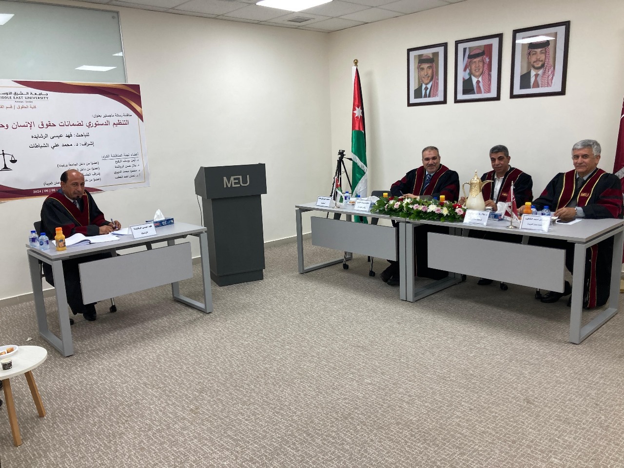 عمّان – نوقشت في كلية الحقوق بجامعة الشرق الأوسط، رسالة ماجستير بعنوان: “التنظیم الدستوري لضمانات حقوق الإنسان وحریاته” للباحث فھد عيسى الرشايده
