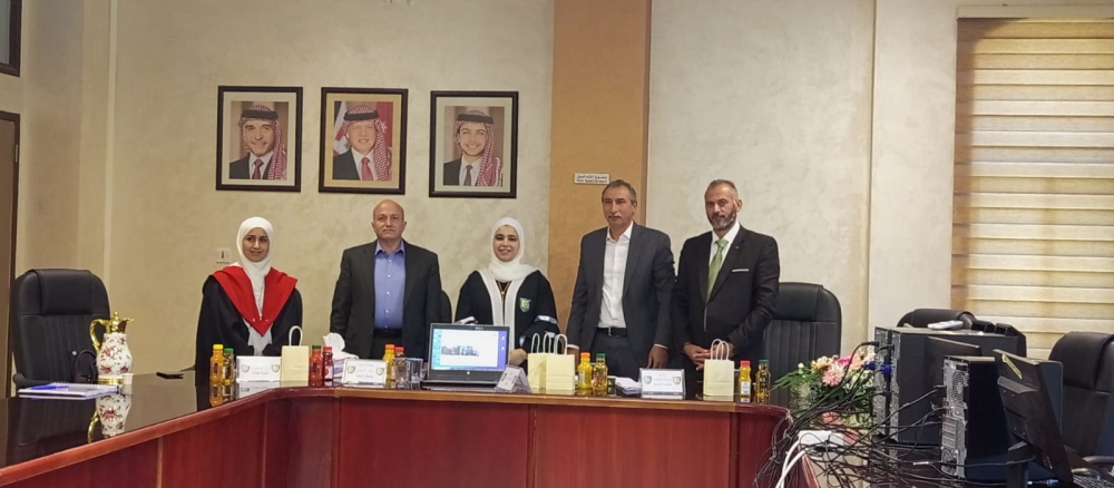 وتكونت لجنة المناقشة من الأستاذ الدكتور عمر البياري مشرف رئيسي والأستاذ الدكتور نورس شطناوي والدكتور جعفر الزعبي والدكتوره بيان السعايده مشرف مشارك والدكتور عبدالله الروابده ممتحنا خارجيا