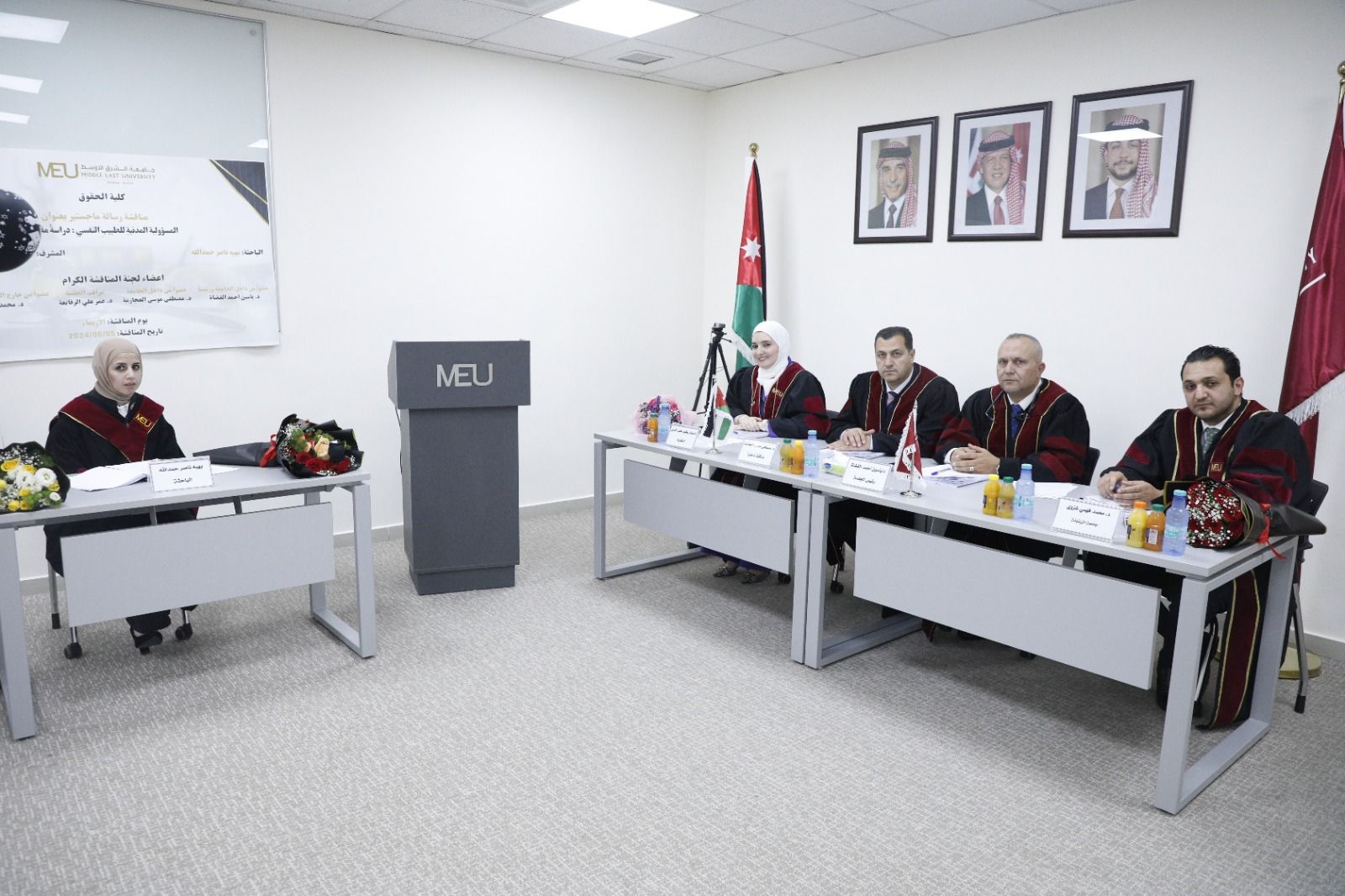 مناقشة رسالة ماجستير في “الشرق الأوسط” بعنوان: المسؤولية المدنية للطبيب النفسي: دراسة مقارنة