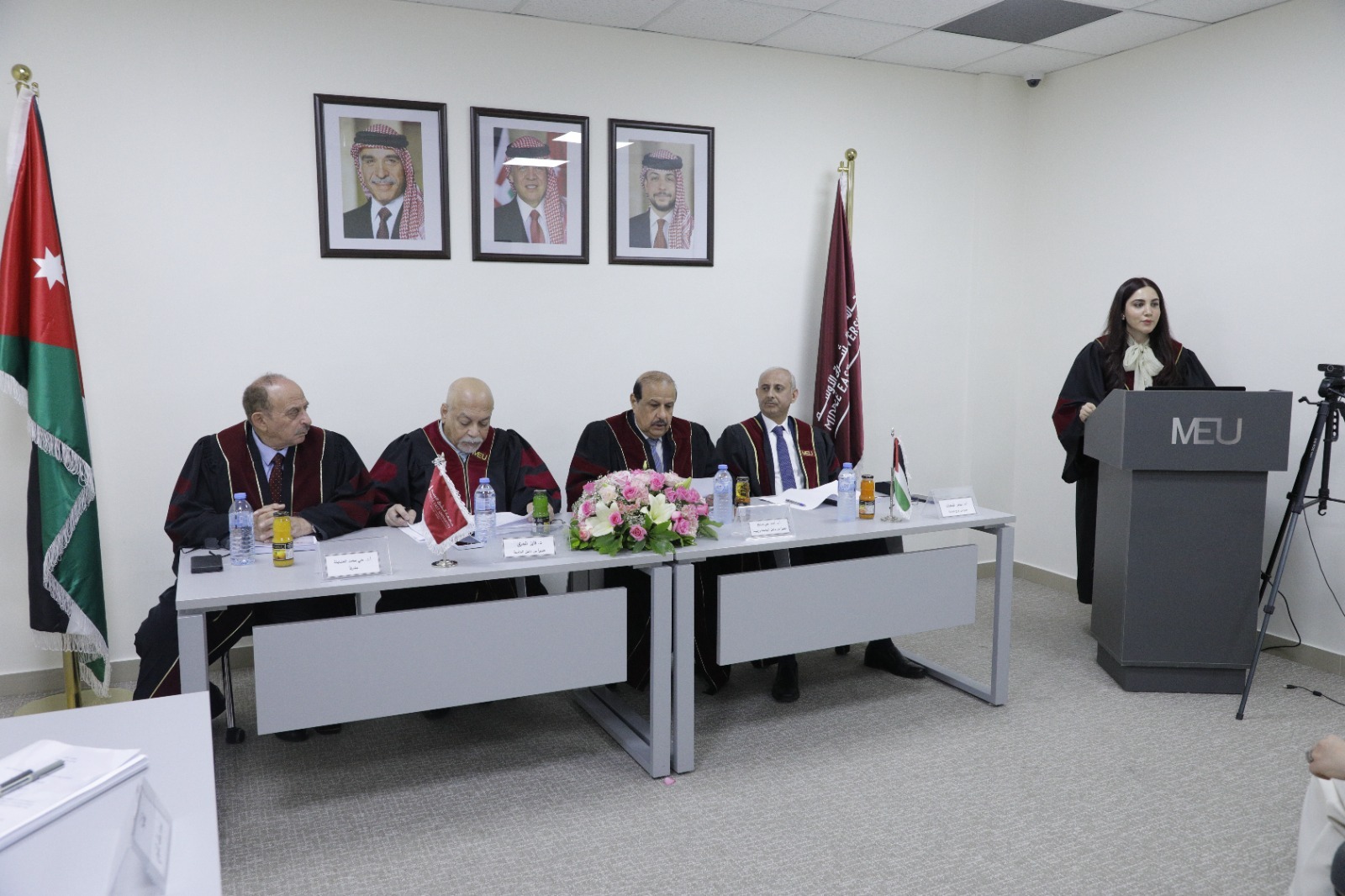 وتألفت لجنه المناقشة من الأستاذ الدكتور احمد علي صالح رئيسا والأستاذ الدكتور علي العضايلة مشرفاً، والدكتور فايز البدري عضوا ، الأستاذ الدكتور سامر الدحيات عضوا من خارج الجامعة