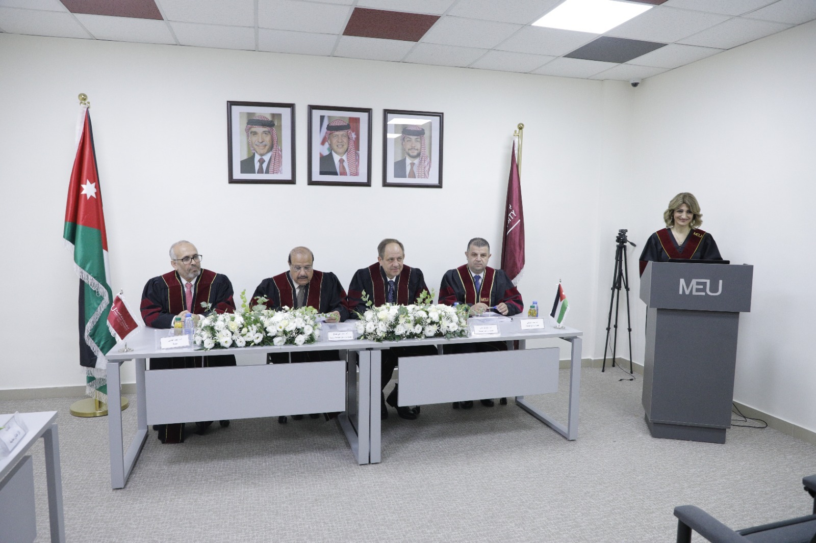 وتألفت لجنة المناقشة من الأستاذ الدكتور احمد علي صالح رئيسًا، الأستاذ الدكتور احمد الغندور مشرفاً، والأستاذ الدكتور عزام أبو مغلي عضوًا، الأستاذ الدكتور محمد شكوكاني عضواً من خارج الجامعة.