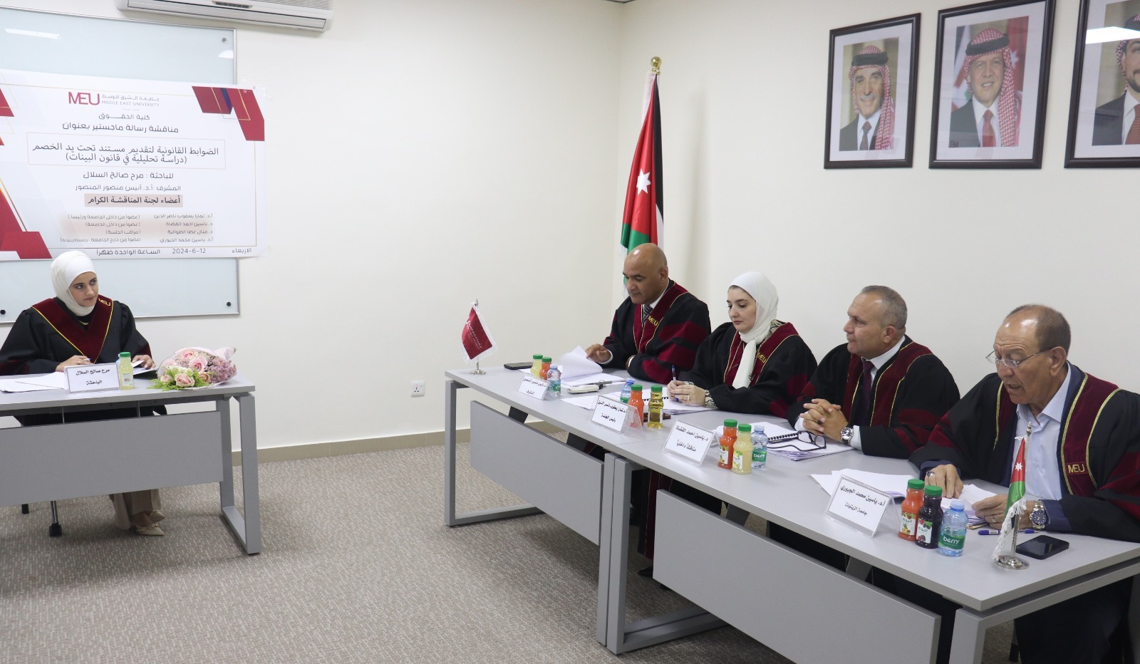 مناقشة رسالة ماجستير في “الشرق الأوسط” بعنوان: الضوابط القانونية لتقديم مستند تحت يد الخصم (دراسة تحليلية في قانون البينات)