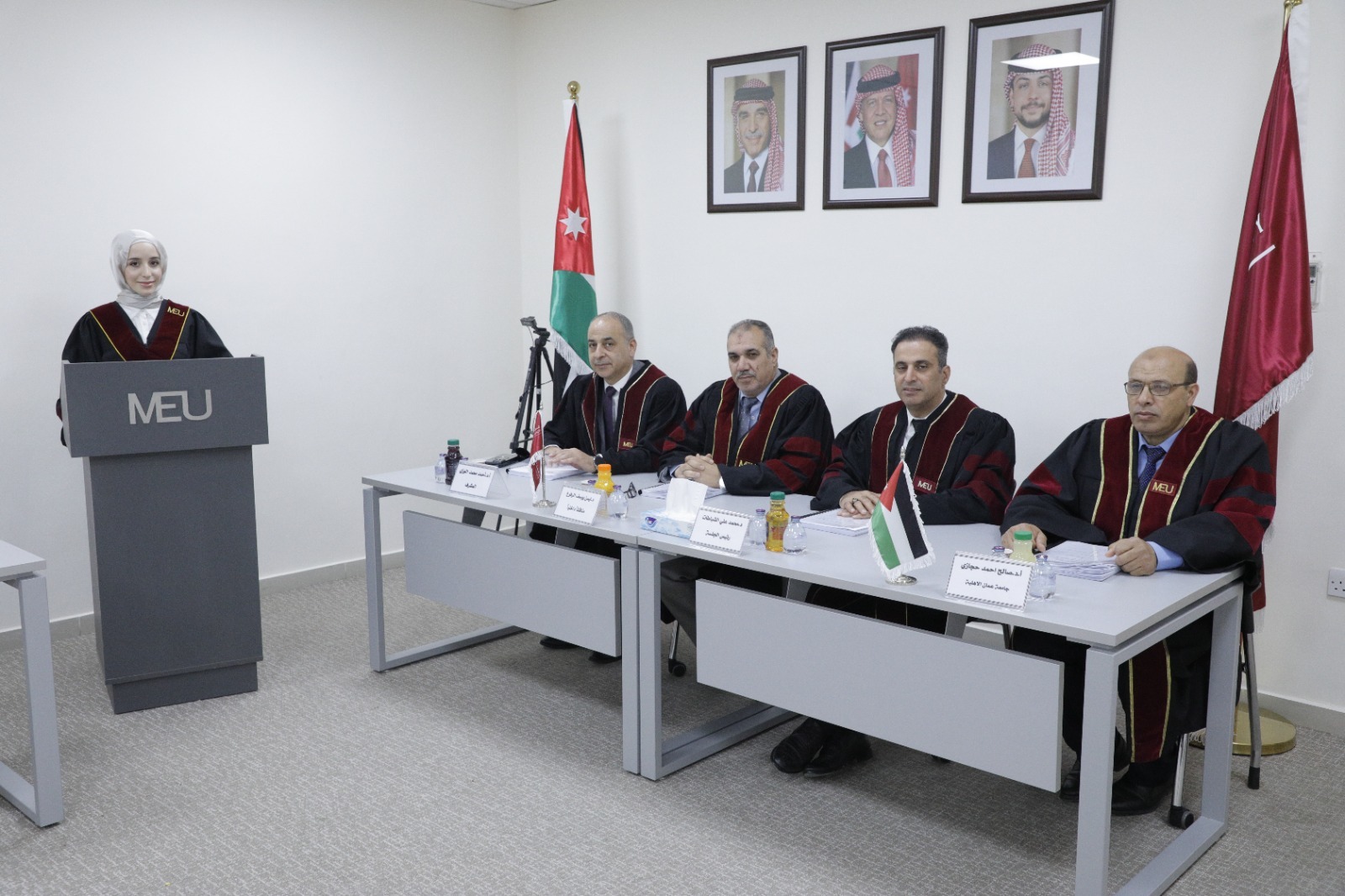 وتألفت لجنة المناقشة من الدكتور محمد الشباطات رئيسا، والأستاذ الدكتور احمد اللوزي مشرفا، والدكتور ايمن الرفوع عضوا، والأستاذ الدكتور صالح حجازي عضوا من خارج الجامعة