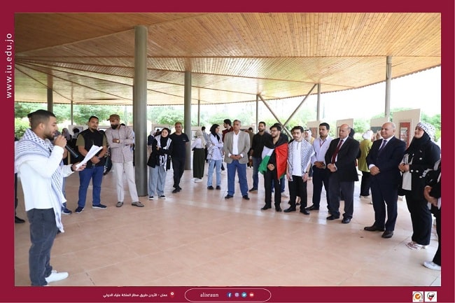 واشتمل المعرض الذي نظمته عمادة شؤون الطلبة، على أعمال يدوية ولوحات فنية من أعمال الطلبة تميزت بالتعبير عن واقع الحال الذي تعيشه غزة وفلسطين، وإبراز وحدة الدم بين الأردن وفلسطين.
