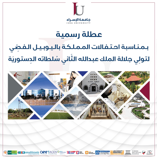 عطلة رسمية في جامعة الاسراء بمناسبة احتفالات اليوبيل الفضي لتولي جلالة الملك سلطاته الدستورية