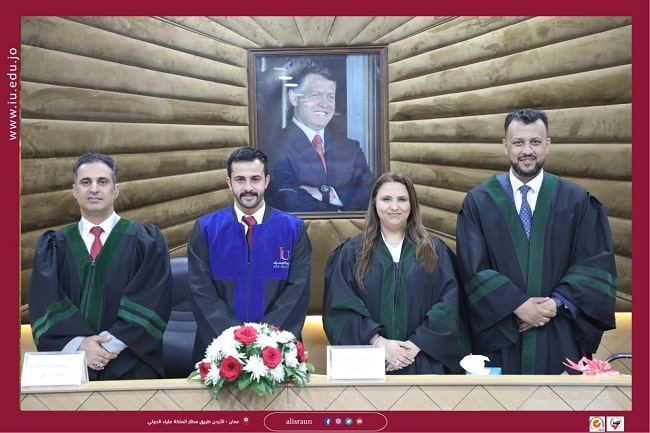 ناقش الطالب محمد وصفي الفالح من كلية الحقوق بجامعة الإسراء رسالة الماجستير الخاصة به والموسومة ب" الأحكام القانونية الناظمة للحضانة البرلمانية لأعضاء مجلس النواب الأردني (دراسة مقارنة)".