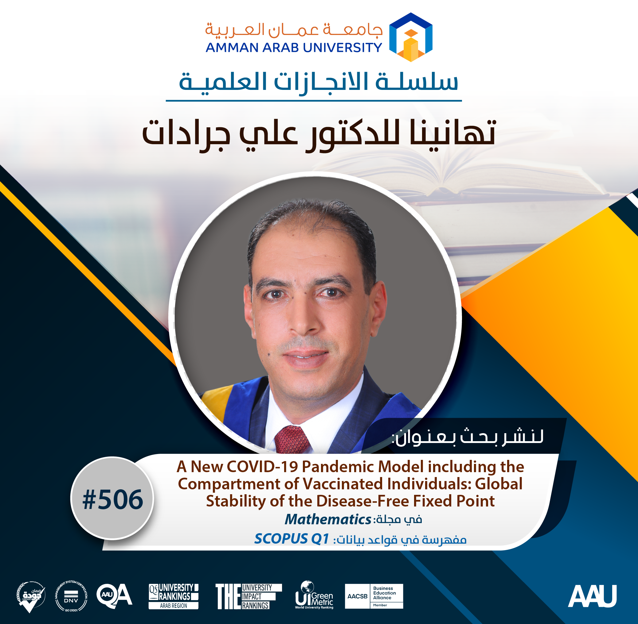 المشاركة في الفيسبوك || المشاركة في تويتر سلسلة الانجازات العلمية - تهانينا د. علي جرادات 2023/08/09 10:24 سلسلة الانجازات العلمية - تهانينا د. علي جرادات أخبار الجامعات أخبار الجامعات اخبار جامعة عمان العربية