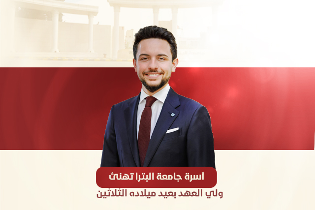 أسرة جامعة البترا تهنئ ولي العهد بعيد ميلاده الثلاثين