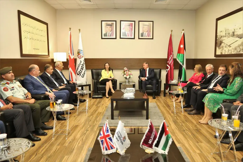 عمّان – أطلقت السفيرة البريطانية في عمان، بريدجيت بريند، حزمة جديدة من البرامج الدولية المستضافة بالتعاون مع جامعة ستراثيكلايد في جامعة الشرق الأوسط، بحضور رئيس هيئة اعتماد مؤسسات التعليم العالي وضمان جودتها الأستاذ الدكتور ظافر الصرايرة، ورئيس جامعة ستراثيكلايد الأستاذ الدكتور السير جيم مكدونالد، ورئيس مجلس أمناء جامعة الشرق الأوسط العين الدكتور يعقوب ناصر الدين، ورئيسة الجامعة الأستاذة الدكتورة سلام المحادين.