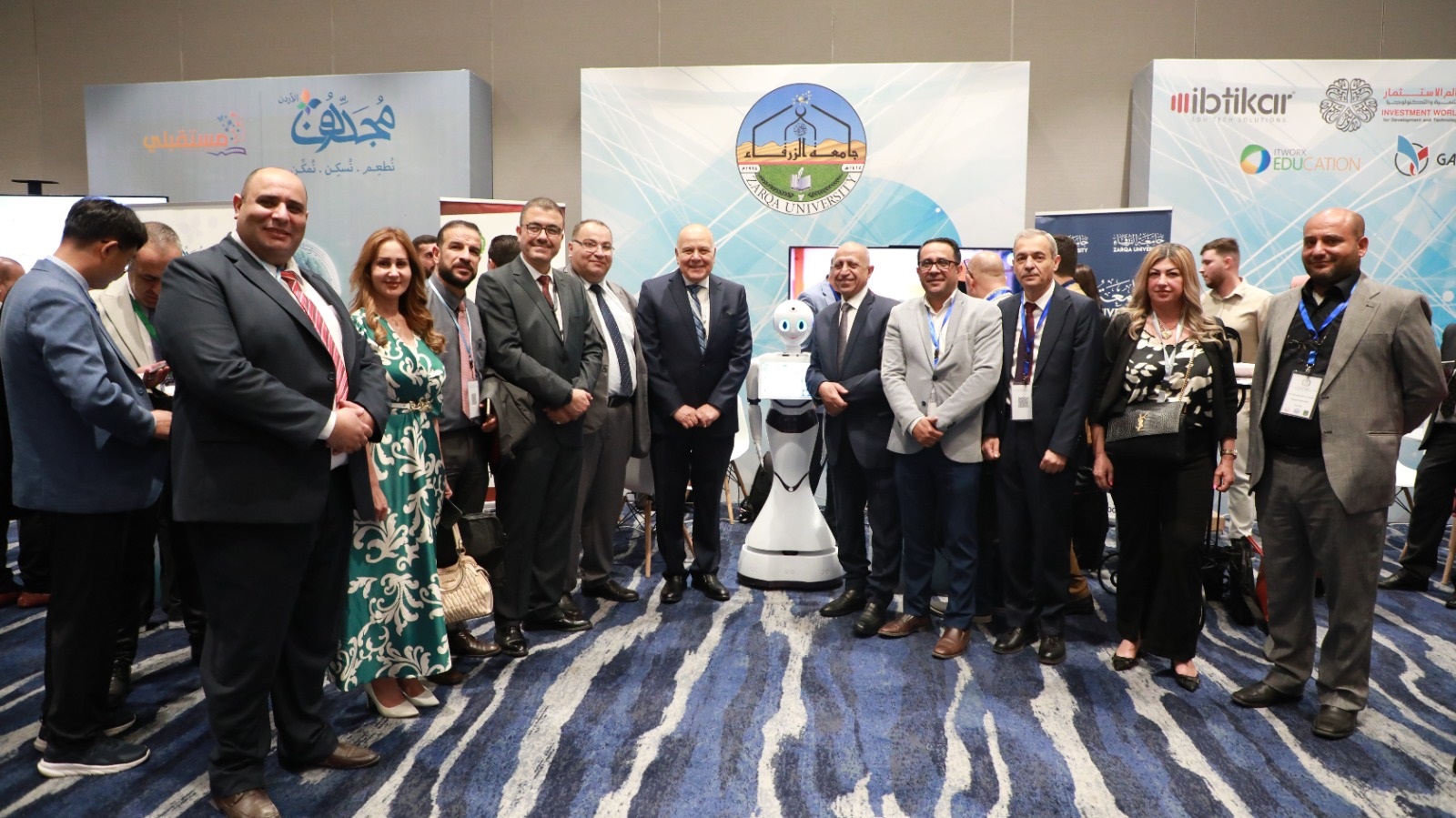 وعرضت جامعة الزرقاء مجموعة من المعدات والمشاريع التي نفذها أعضاء هيئة التدريس والطلبة في مجال الذكاء الاصطناعي، ولاقت استحسان الحضور.
