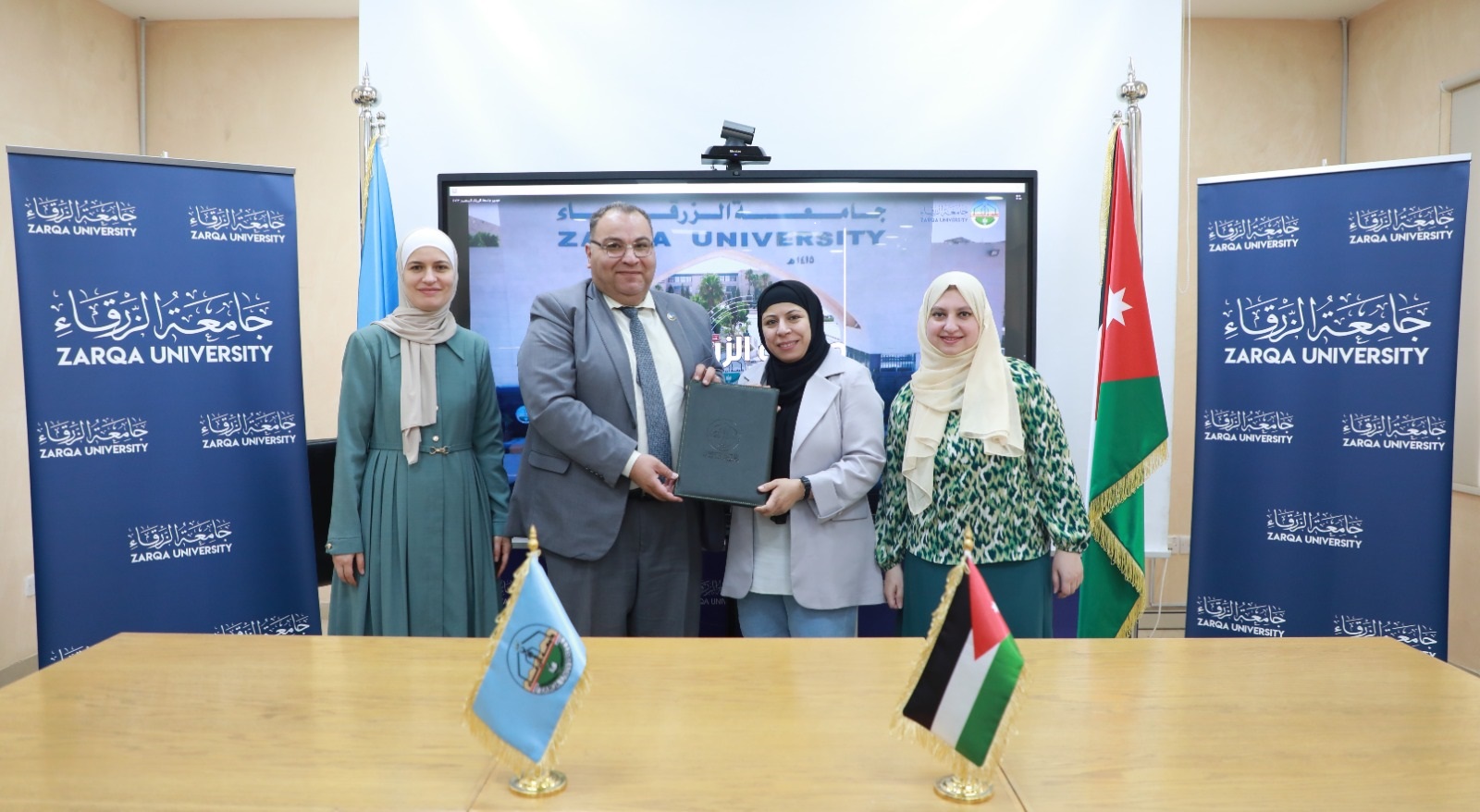 ووقع اتفاقية التفاهم عن جامعة الزرقاء رئيسها الأستاذ الدكتور نضال الرمحي وعن الصيدلية الدكتورة علا محمد شعبان بحضور عميد كلية الصيدلة الدكتورة أحلام الكيلاني والدكتورة هناء أبو صوان.