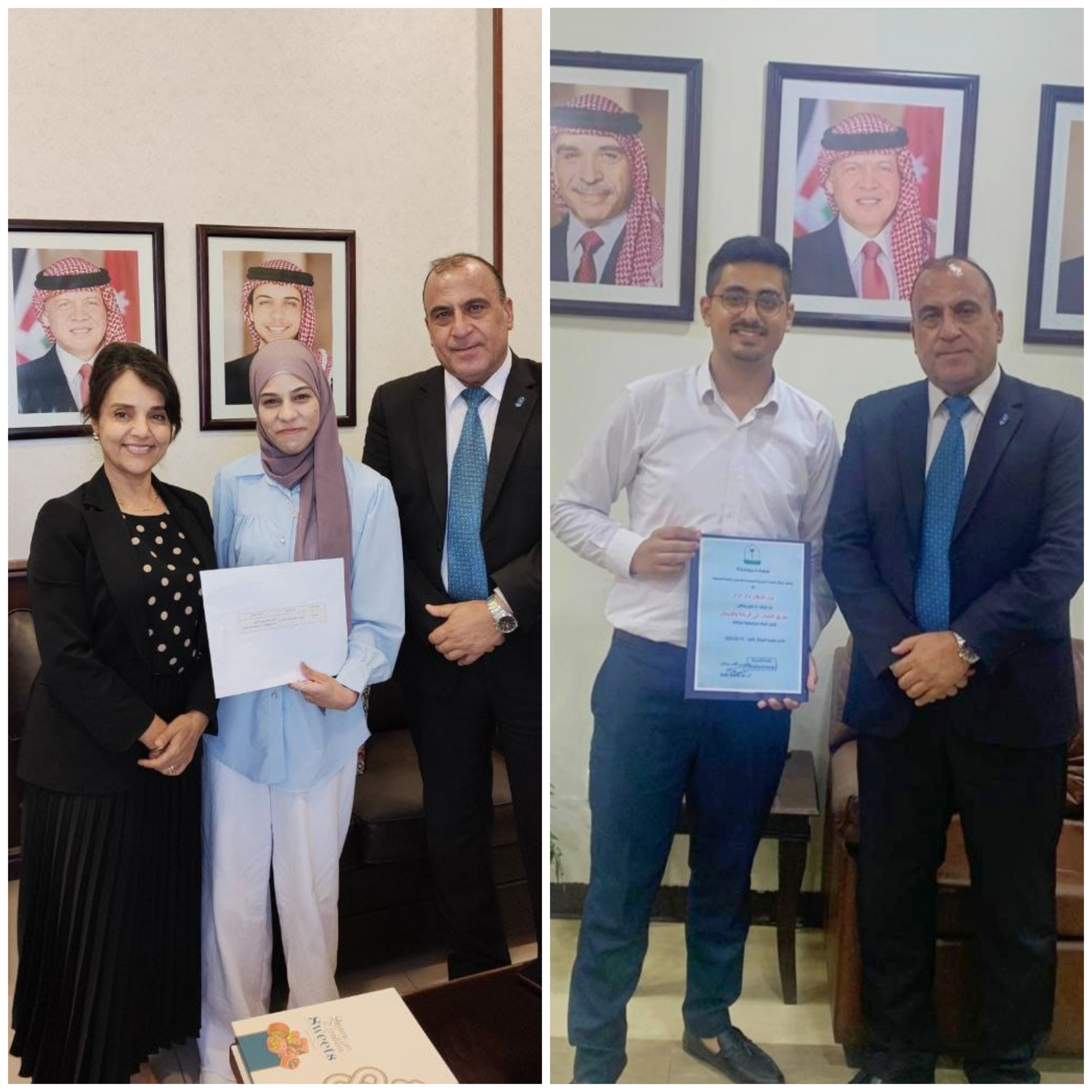 وكرمت الأستاذ الدكتورة سهاد الجندي نائب رئيس الجامعة، بحضور عميد شؤون الطلبة الأستاذ الدكتور ماجد مساعدة، الطلبة: السلطي وجرار، تقديرًا لجهودهم من خلال الأندية الطلابية في تطوير مهارات التواصل والقيادة والعمل الجماعي بين الطلبة، وتنمية اهتماماتهم الشخصية وتوسيع آفاقهم، وخلق مجتمع طلابي متماسك من خلال تنظيم فعاليات اجتماعية وثقافية ورياضية.