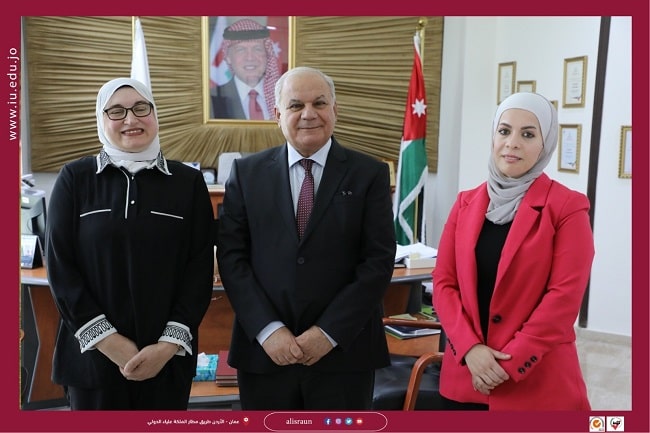 استقبل معالي الأستاذ الدكتور محمد حامد رئيس الجامعة في مكتبه الاستاذ الدكتور كفاح برهم عميد الدراسات العليا في جامعة النجاح وبحضور عميد كلية العلوم التربوية الدكتورة اسماء الخوالدة لمتابعة أعمال التحضير للمؤتمر الدولي العلمي المحكم الطفولة بين تحديات الواقع وطموحات المستقبل المنوي عقده بالتشارك ما بين الجامعتين في رحاب جامعة الاسراء.