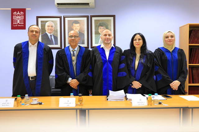 تألفت لجنة المناقشة من الدكتورة منال مزاهرة مشرفًا ورئيسًا، والأستاذ الدكتور علي نجادات مناقشًا داخليًّا، والدكتورة رشا اليعقوب مناقشًا داخليًّا، بالإضافة إلى الدكتور محمد المومني مناقشًا خارجيًّا. وقد أشادت اللجنة بالمنهجية العلمية التي اعتمدها الباحث وبالمعلومات التي قدمها في دراسته.