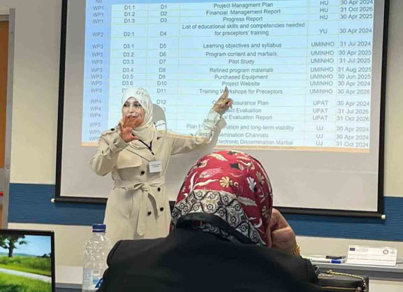 وشارك الوفد المؤلف من 29 أستاذًا من كليات الطب في الجامعات الأردنية، وأعضاء الفريق الإداري، وشركاء المشروع الأوروبيين، في سلسلة من الجلسات التدريبية وورش العمل التي تناولت كيفية اختبار المواد التدريبية وتطويرها وإعداد المدرسين السريريين وتدريبهم لتنفيذ التدريب السريري لطلبة الطب في المستشفيات وفق أفضل الممارسات التدريبية وأحدثها وبما يتناسب مع احتياجات نظام التعليم الطبي الأردني والمعايير العالمية للتعليم الطبي، واطلع الوفد على مختبرات التعليم الطبي الحديثة التابعة لجامعة باتراس وآليات التدريب والتدريس فيها. كما عقد الوفد اجتماعات إدارية لمناقشة خطط العمل المستقبلية وآليات تنفيذ المشروع.