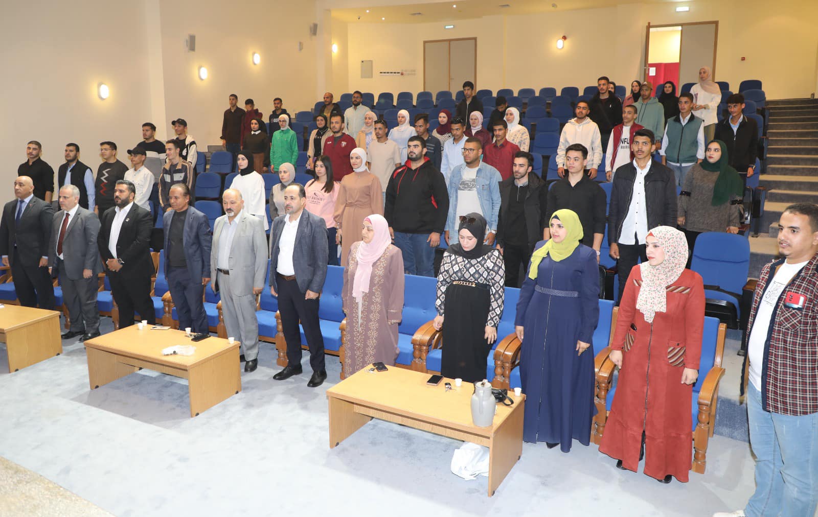 عميد الكلية الأستاذ الدكتور حابس المشاقبة نقل للطلبة الجدد تحيات رئيس الجامعة ومباركته لهم بوجودهم في بيتهم الثاني بالجامعة، مشيراً إلى أن الحياة الجامعية تبني منظومة جديدة بالشخصية وتشكل مكانة مناسبة للعلم وتربية العقول وتهذيب النفوس وتشكل حصنا لتبني طموحات، حيث حث الطلبة على ضرورة النهل من معين المعارف بالجامعة، وأن يطوروا من مهاراتهم وميولهم واتجاهاتهم لأنهم أمل المستقبل وروح الحاضر .