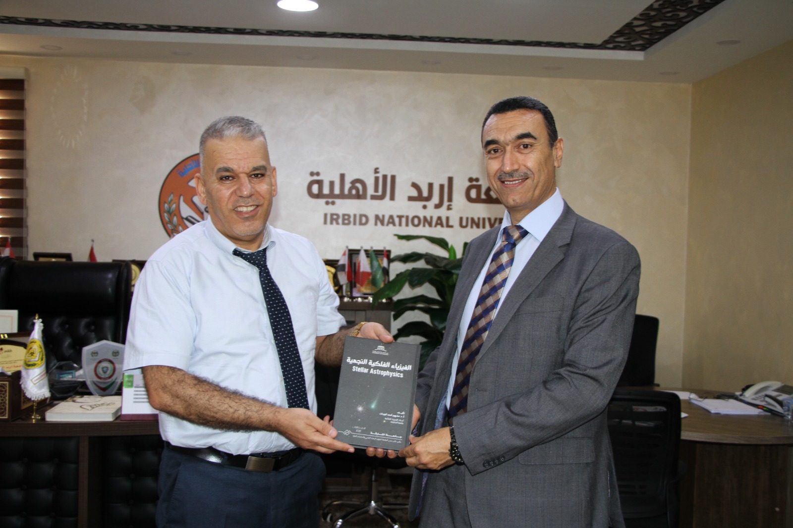 قام الأستاذ الدكتور مشهور الوردات/ أستاذ الفيزياء الفلكية في جامعة الشارقة، بزيارة إلى جامعة إربد الأهلية، حيث قدم لرئيس الجامعة الأستاذ الدكتور أحمد منصور الخصاونة، مجموعة من كتبه ودراساته العلمية من كتب وأبحاث كإهداء إلى مكتبة الجامعة، وتمنى للجامعة مزيداً من التقدم والنجاح.