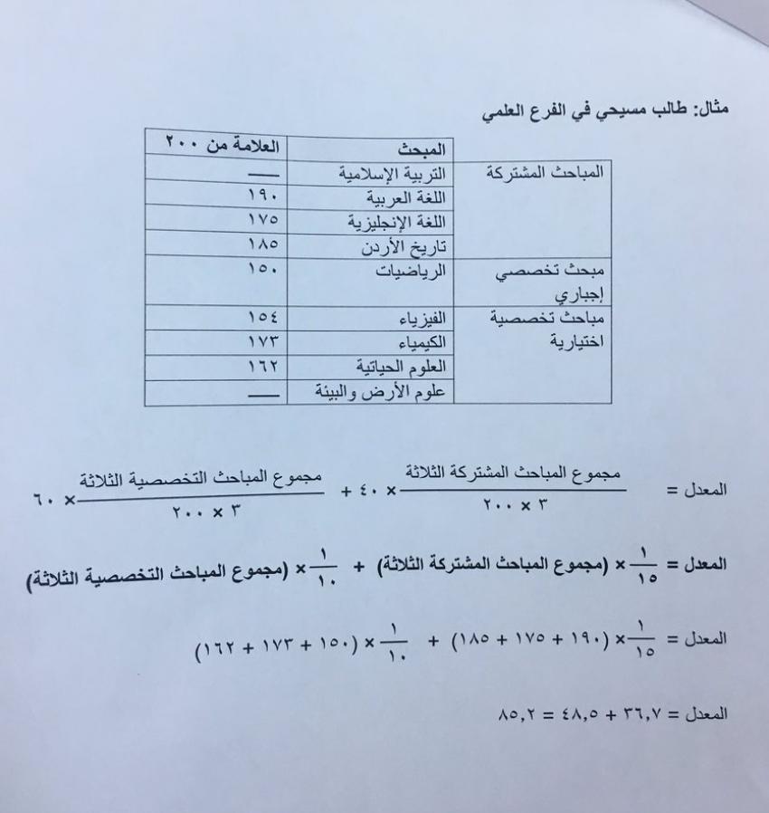 وأضاف كنانة أن طريقة احتساب معدل التوجيهي للدورة الحالية كما كانت أعلاه في العام الماضي؛ وهي وفق الخطة الدراسية المعتمدة.