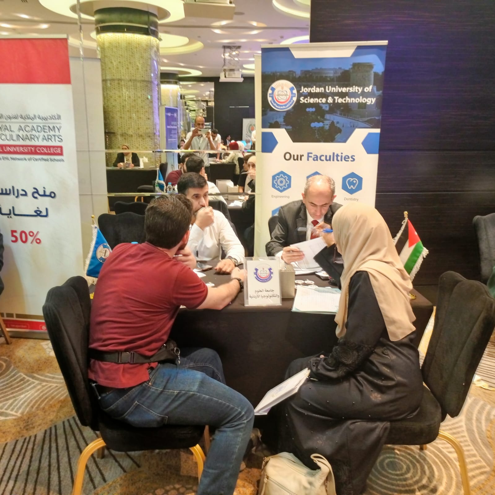 21 آب/// شاركت جامعة العلوم والتكنولوجيا الأردنية في المعرض الطلابي الخاص بتوجيه خريجي طلبة الثانوية العامة لهذا العام، والذي أقيم في فندق الهيلتون عمان، حول التخصصات التي تطرحها الجامعة وآلية تقديم طلبات الالتحاق في الجامعة، وذلك إيمانًا بالمسؤولية المجتمعية تجاه الطلبة في هذه المرحلة.